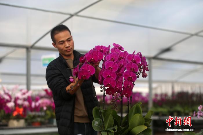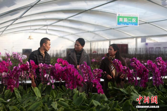 11月25日,基天卖力人尚胜祥给瞅客引见胡蝶兰种类。弛忠苹 摄